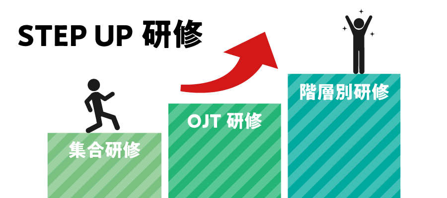 仕事に慣れてくれば、管理者として必要な要素を学ぶ研修や、専門的な技術・知識を学ぶ研修など、自分のレイヤーに合わせた研修が待っています。ベテラン・新人問わず、なりたい自分へ向けて成長できる組織です。